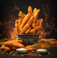chicken finger food breast crispy meat nugget top plate view crunchy meal dish sauce snack table homemade white cooked brown delicious bbq background dinner fast wooden fastfood lunch above golden appetizer ketchup fresh tomato diet cuisine grilled roasted fried poultry breaded rustic american strips nuggets tasty portion eatImagine Buddy