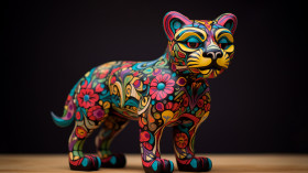A colorful hand crafted figurine of a mexican panther, alebrije style
