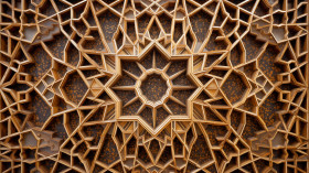 Ceiling of the alhambra with intricate woodwork, arabesque style art