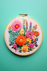 Beautiful embroidered flowers in hoop, cross stitching style art