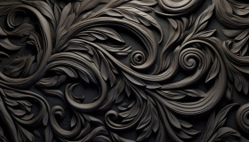 A black abstract wallpaper with swirly ornaments, embossing styles
