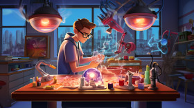 education people school color communication strategy day ethnicity cooperation introducing professional occupation imaginebuddy student lab lamp mix experiment boy glasses holding 3d animation cartoonImagine Buddy