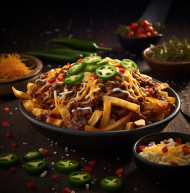 A photo of a chili cheese fries, fast food advertisement stock images