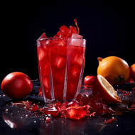 A photo of a pomegranate juice, beverage advertisement photography inspiration