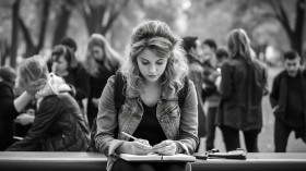 woman people summer fashion book space student portrait asian lifestyle model person modern pen young beautiful adult day writing relax backpack ideas outdoors bench elegance copy notes trendy casual female attractive real outside looking confident journal pretty cool one stylish diary lady writer novel sitting black and whiteImagine Buddy