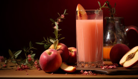 A photo of a peach juice, beverage advertisement photography inspiration