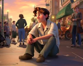people car fashion vintage city retro face red street model person old boy shirt young beautiful adult men vehicle transportation cloth wheel element auto front town guy leaned stand outside male sittingImagine Buddy
