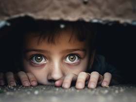 A child is hiding under the bed too scared to come out they can