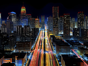 A photo of a cityscapes at night