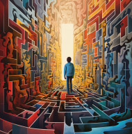Creative thinker solving problems in maze