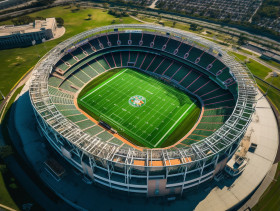 Telephoto aerial view of soccer stadium