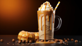 A photo of a salted caramel milkshake, beverage advertisement photography inspiration