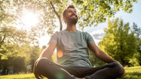 A person sitting in a park enjoying the fresh air and sunshine