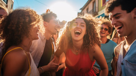 Group of friends having fun in the city