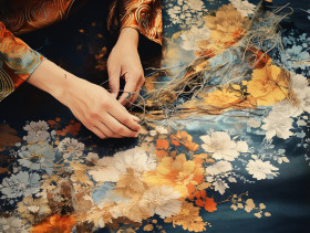 flower floral abstract pattern seamless textile texture watercolor wedding isolated fashion vintage illustration spring leaf poster template garden orange card wallpaper ornament roses cover gradient natural sofa decoration romantic cloth batik craft indigo artwork pillow upholstery surface collection linens navy blue background brush strokes couch interior real rose rose bud wrapping closeup home decoration tie dye repeat all over printImagine Buddy