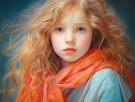Young girl with long curly hair in an orange scarf