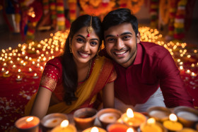 diwali india couple young happy festival festive celebration celebration time joy happiness love togetherness family friends relatives food drinks sweets snacks crackers fireworks diyas rangoli traditional ethnic dress costume culture heritage tradition celebration of lightImagine Buddy