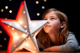 A photo of two young people in fashionable christmas clothes standing in front of a colored background, christmas festival people image