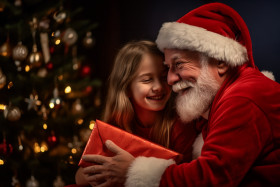 happy senior man granddaughter gift christmas at home embrace family togetherness love warmth celebration holiday cheer joy happiness gift-giving presents receiving opening smile laughter happiness cheer joy merry merry christmas christmas spirit holiday spirit family time love love oneImagine Buddy