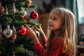 christmas tree christmas tree ornament decoration holiday celebration happy festive joyful merry cheerful child girl young beautiful putting hanging decorating winter holiday season christmas spirit christmas magic christmas joyImagine Buddy
