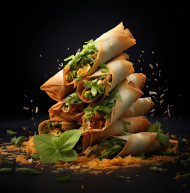 fast food wrap breakfast lunch dinner snack delicious mouthwatering appetizing craveable fresh juicy flavorful cheesy saucy crispy crunchy gooey melty instagrammable shareable tempting satisfying salad imaginebuddy advertisement Spring rollsImagine Buddy