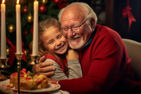 girl granddaughter hugging embracing happy smiling grandfather christmas festive dinner home grandchild thanking grandpa xmas present family love joy celebration gift happiness togetherness bond tradition memory holiday season tradition spirit warmth cherish grateful blessed loved thankful blessed thankful merry bright jolly festive cheer warmth love familyImagine Buddy