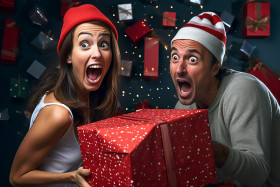 man surprise woman christmas gift present love happy family couple romance affection care tenderness joy excitement surprise happy christmas gift present love family couple romance affection care tenderness joy excitementImagine Buddy