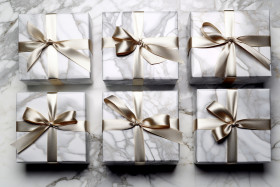 christmas silver handmade gift boxes white marble background top view festive holiday season present wrapped ribbon bow noel merry christmastide yule peace joy love happiness giving receiving family friends celebration cheer excitement anticipation magic wonder winter wonderland snow ice snowflakes trees lights ornaments decorations gift tagsImagine Buddy