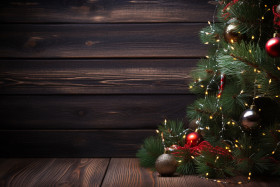 christmas background fir tree decoration dark wooden board winter holiday festive celebration ornament gift wreath garland lights star snow pine needle cone branch trunk bark wood table rustic vintage antique natural evergreen coniferous festive holiday spirit traditional merry bright joy peace loveImagine Buddy