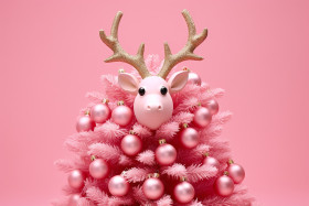 christmas reindeer fir evergreen bauble decoration antlers pastel pink background winter holiday festive merry bright jolly noel peace love joy gift present tree ornament lights snow ice cold north pole santa sleigh magic wonder dream believe celebrate cheer family friends togetherness happinessImagine Buddy
