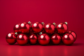 christmas baubles decoration red background copyspace newyear xmas holiday festive season winter celebration merry bright joy noel peace happiness love cheer gift present ornament ornament holiday card christmas card newyear card xmas card greeting card winter wonderland santa claus reindeer snowman elf north pole jingle bells candy cane gingerbread mistletoe holly stockings garland wreath lights tinsel treeImagine Buddy