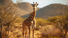 A photo of a giraffe in natural environment full body from a distance, animal in nature photography
