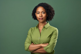 successful young african-american female entrepreneur small business owner female office employee black businesswoman green casual shirt confident pose arms crossed business woman success power confidence leadership inspiration motivationImagine Buddy