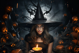 halloween witch girl magic book spells portrait beautiful young woman witches hat conjuring witchcraft spooky dark forest halloween party costume fantasy mystical enchanting spellbinding occult supernatural gothic macabre eerie creepy spooky eerie spine-chilling chilling petrifying terrifying haunting spellbinding enchanting mesmerizing sorceressImagine Buddy