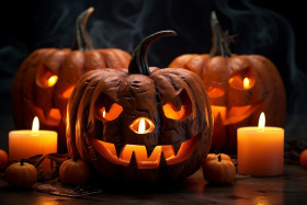 halloween pumpkin candle jack o lantern spooky scary creepy festive fall autumn october holiday decoration glowing fire flame light night eerie haunted witch ghost monster vampire werewolf zombie mummy skeleton tombstone graveyard cemetery coffin haunted house full moon bats cobwebs spiders halloween costume halloween candy halloween partyImagine Buddy