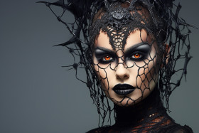 halloween woman makeup black gray background beautiful isolated photo costume witch vampire skull sugar skull cat spider web bat pumpkin candy trick-or-treat scary spooky dark creepy eerie horror gothic fantasy cosplay costume party festival celebration holiday portrait headshot beauty fashion glamour female model pose expression eyes lipsImagine Buddy