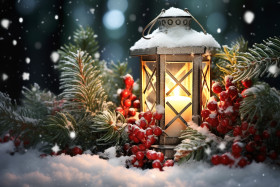christmas lantern snow fir branch sunlight winter holiday decoration nature landscape xmas cozy festive magical peaceful serene tranquil idyllic picturesque scenic beautiful winter wonderland white christmas christmas spirit holiday cheer merry christmas happy holidays season's greetings winter solstice new year noel peace joy love happiness togetherness family friends celebration tradition magic wonder enchantment light warmth glowImagine Buddy