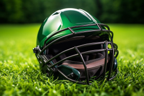 cricket helmet grass playground lights focused down view sports safety gear equipment protection game match field wicket pitch boundary pavilion crowd spectator fan umpire player batsman bowler wicketkeeper fielder all-rounder captain coach team tournament league competition championship victory trophy win lose draw performance skill dedication passion excitement thrill fun entertainmentImagine Buddy