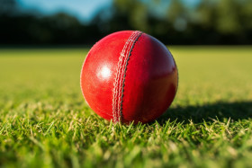 cricket ball wicket grass red green white leather stitching sphere smooth close-up sports game equipment action competition match batsman bowler fielder umpire stadium team runs wickets overs victory defeat excitement passion tradition cultureImagine Buddy