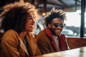 A picture of a black couple on a date at a restaurant, festivals and occasions anniversary image