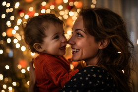 A photo of a mother and her baby celebrating new year at home, happy new year image