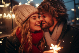 winter snow couple love romantic new year outdoors fun happy kiss hug hold hands snow fight build snowman go sledding ice skating bonfire fireworks sparklers hot chocolate champagne toast cheers winter wonderland holiday celebration together memories forever lovebirds newlyweds soulmates bliss joy happiness romance passion winter romanceImagine Buddy