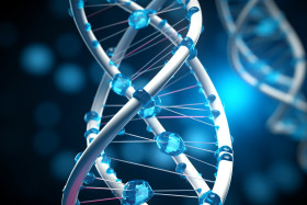 A photo of a blue and white dna chain, healthcare stock image