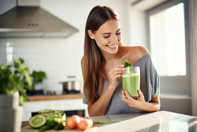 woman smoothie green kitchen healthy drink blender breakfast food meal fruits vegetables nutrition wellness lifestyle healthy eating diet health fitness juice detox detoxify cleanse weight loss energy vitamins minerals antioxidants immune system nutritionist health food organic vegan plant-based delicious refreshing tasty yummy happy smile enjoy morning kitchen counter countertop sunlight window kitchenwareImagine Buddy