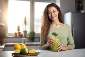 woman kitchen detox juice healthy lifestyle eating drink diet recipe green smoothie vegan vegetarian nutrition fitness wellness beauty skin hair body happiness smile young female adult person lifestyle healthy fresh natural organic vitamins minerals antioxidants energy boost weight loss cleansing detoxifying healthy deliciousImagine Buddy