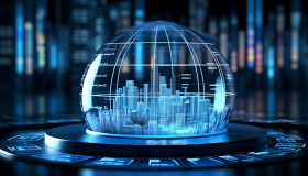 A photo of a glass dome digital blue, finance stock photo