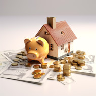 A photo of a investment in real estate saving money to buy a new home with note on white background, home loan stock image