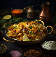 biryani food rice spicy delicious indian cuisine meal dish lunch dinner traditional fragrant basmati chicken lamb beef vegetarian tasty aromatic flavorful festive celebration festivity gourmet recipe cooked saffron curried herbs spices hot steamy yummy mouthwatering served platter authentic homemade takeout illustration imaginebuddy buddyImagine Buddy