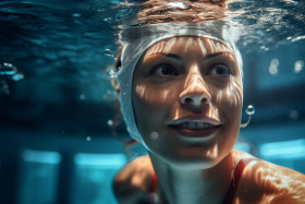 Photo of an athlete swimming underwater in a pool, indoor sports and leisure activities images