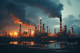 Industrial oil refinery with steam on sunset, industrial, manufa
